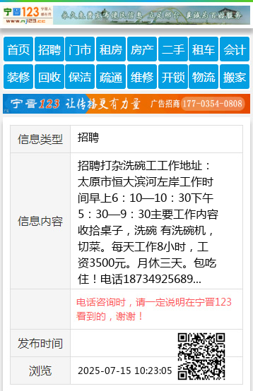 电话18734925689 【电话咨询时,请一定说明在太原生活网看到的,谢谢!】 |