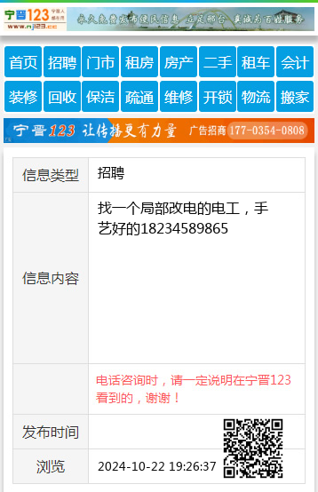 找一个局部改电的电工,手艺好的18234589865