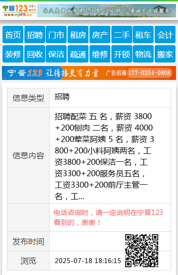 招聘 配菜 五 名,薪资 3800+200 刨肉 二名,薪资 4000+200 荤菜阿姨 5 名,薪资 3800+200 小料阿姨两名,工资3800+200 保洁一名,工资3300+200 服务员五名,工资3300+200 前厅主管一名,工资3600+200 迎宾两名,工资3800+200 收银员一名,工资5000+500 以上人员一经录用包吃住,月休四天,地址,学府街唐尧商务酒店旁边大龙燚火锅 联系电话 19935389997 |