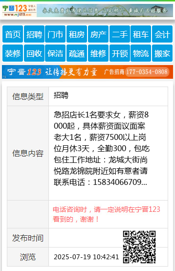 急招店长1名