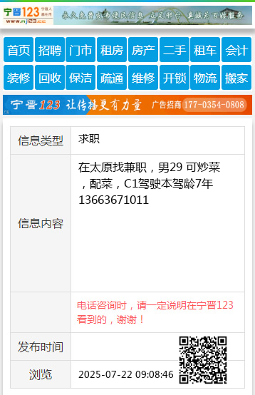 在太原找兼职,男29 可炒菜,配菜,C1驾驶本驾龄7年 13663671011