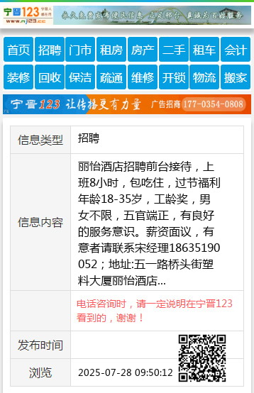 丽怡酒店招聘前台接待,上班8小时,包吃住,过节福利