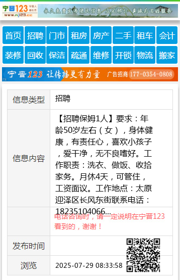【招聘保姆1人】