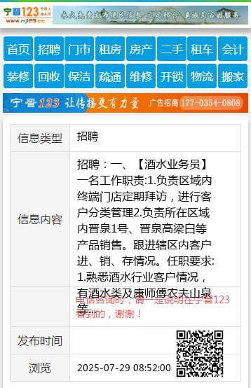 2.负责所在区域内晋泉1号、晋泉高梁白等产品销售。跟进辖区内客户进、销、存情况。