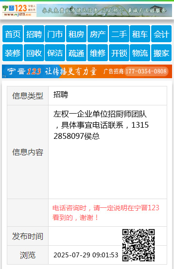 左权一企业单位招厨师团队,具体事宜电话联系,13152858097侯总