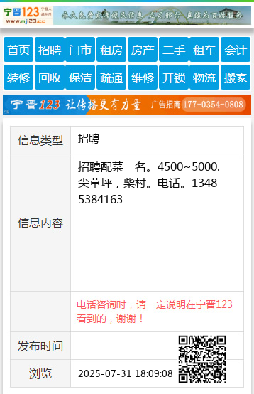 招聘配菜一名。4500~5000.尖草坪,柴村。电话。13485384163 【电话咨询时,请一定说明在太原生活网看到的,谢谢!】 |