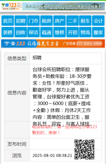 要求:女性!形象好气质佳,勤奋好学,努力上进,服从管理,台球爱好者优先