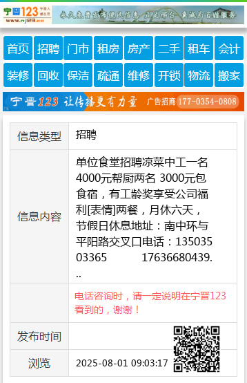 | 防骗提醒: | 太原生活网(www.sxtaiyuan.net)提醒您:手工活、网络兼职、刷单,都是骗子!凡以各种名义收取费用的都是骗子!找工作是往兜里挣钱,让你往外掏钱的都是骗子!异地招聘请提高警惕,谨防诈骗! |
