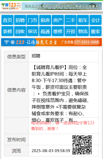 【诚聘育儿看护】