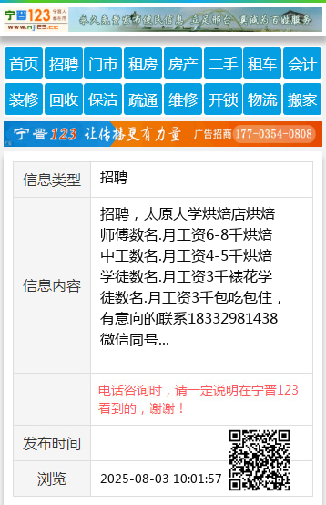 包吃包住,有意向的联系18332981438微信同号 【电话咨询时,请一定说明在太原生活网看到的,谢谢!】 |