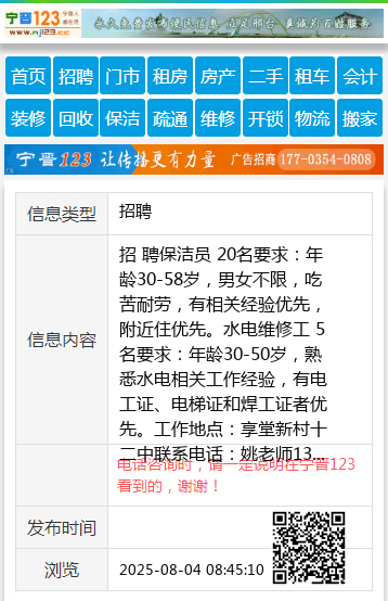 要求:年龄30-50岁,熟悉水电相关工作经验,有电工证、电梯证和焊工证者优先。