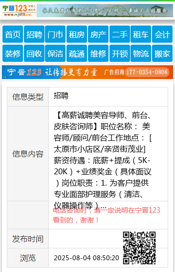 工作地点: [太原市小店区/亲贤街茂业]