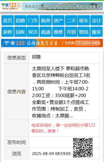 太原同至人楼下 泰和超市熟食区北京烤鸭柜台招员工3名,两班倒