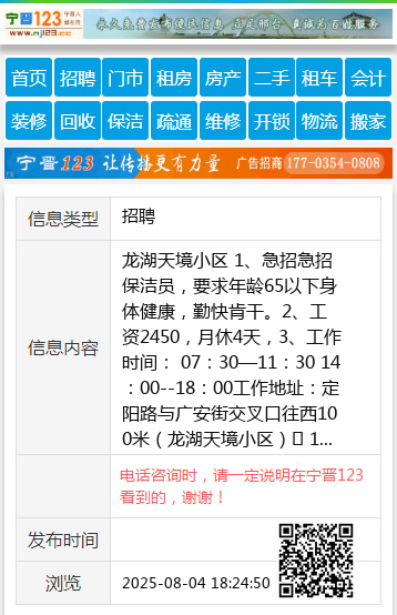 1、急招急招保洁员,要求年龄65以下身体健康,勤快肯干。