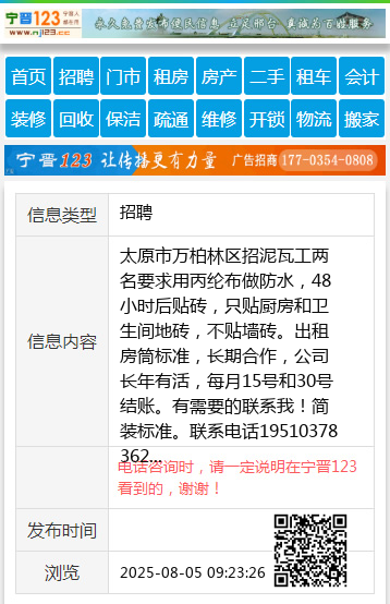 联系电话19510378362 【电话咨询时,请一定说明在太原生活网看到的,谢谢!】 |