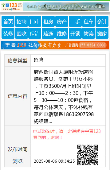府西街国贸大厦附近饭店招聘服务员、洗碗工