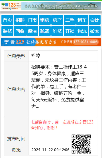 招聘要求:普工操作工18-45周岁,身体健康,适应三班倒,无纹身