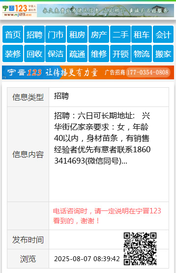 要求:女,年龄40以内,身材苗条,有销售经验者优先