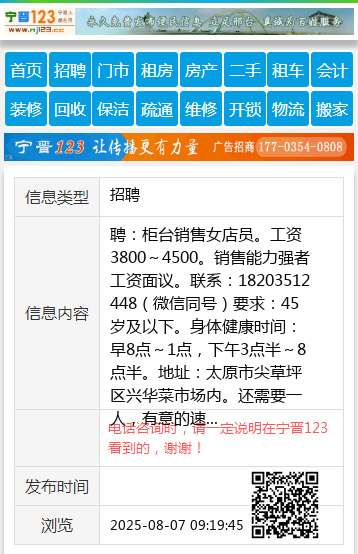 聘:柜台销售女店员。