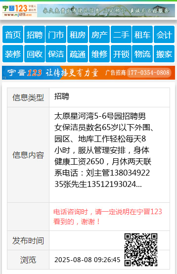 太原星河湾5-6号园招聘男女保洁员数名