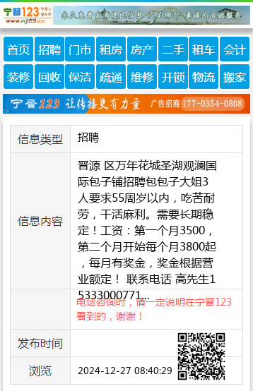 晋源 区万年花城圣湖观澜国际包子铺招聘包包子大姐3人要求55周岁以内,吃苦耐劳,干活麻利。需要长期稳定!工资:第一个月3500,第二个月开始每个月3800起,每月有奖金,奖金根据营业额定!