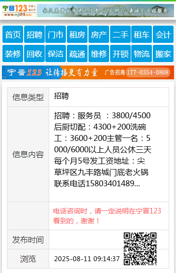 | 防骗提醒: | 太原生活网(www.sxtaiyuan.net)提醒您:手工活、网络兼职、刷单,都是骗子!凡以各种名义收取费用的都是骗子!找工作是往兜里挣钱,让你往外掏钱的都是骗子!异地招聘请提高警惕,谨防诈骗! |