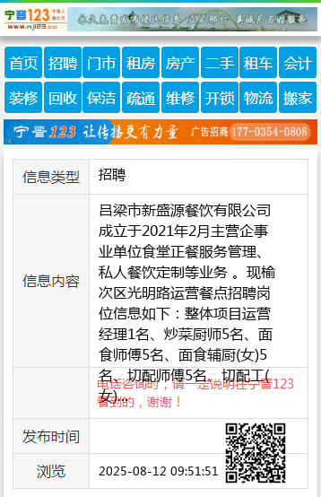 岗位服务地址:榆次区光明路晋能光伏有限公司职工餐厅 【电话咨询时,请一定说明在太原生活网看到的,谢谢!】 |