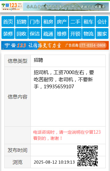 招司机,工资7000左右,要吃苦耐劳,老司机,不要新手,19935659107