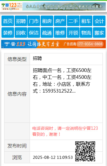 | 防骗提醒: | 太原生活网(www.sxtaiyuan.net)提醒您:手工活、网络兼职、刷单,都是骗子!凡以各种名义收取费用的都是骗子!找工作是往兜里挣钱,让你往外掏钱的都是骗子!异地招聘请提高警惕,谨防诈骗! |