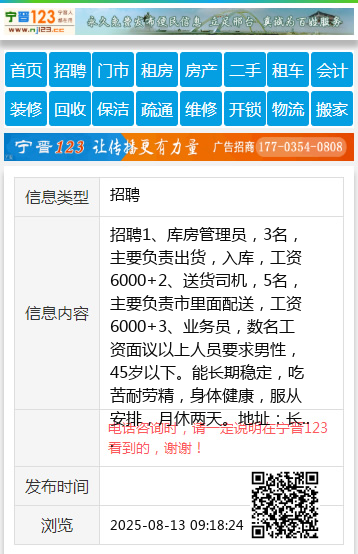 1、库房管理员,3名,主要负责出货,入库,工资6000+