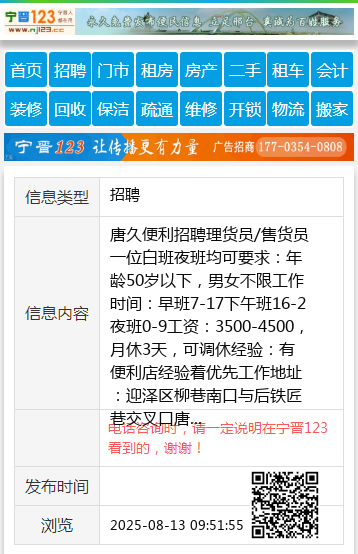 工作地址:迎泽区柳巷南口与后铁匠巷交叉口唐久便利