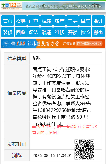 职位要求:年龄在40周岁以下,身体健康,工作态度认真,服从