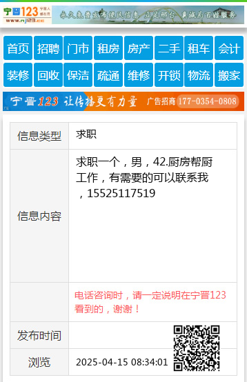 求职一个,男,42.厨房帮厨工作,有需要的可以联系我,15525117519