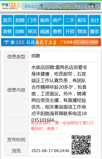 | 防骗提醒: | 太原生活网(www.sxtaiyuan.net)提醒您:手工活、网络兼职、刷单,都是骗子!凡以各种名义收取费用的都是骗子!找工作是往兜里挣钱,让你往外掏钱的都是骗子!异地招聘请提高警惕,谨防诈骗! |