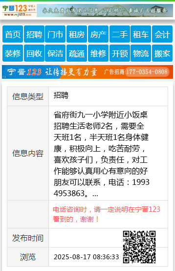 省府街九一小学附近小饭桌招聘生活老师2名,