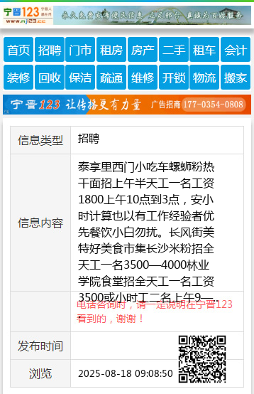 泰享里西门小吃车螺蛳粉热干面招上午半天工一名工资1800