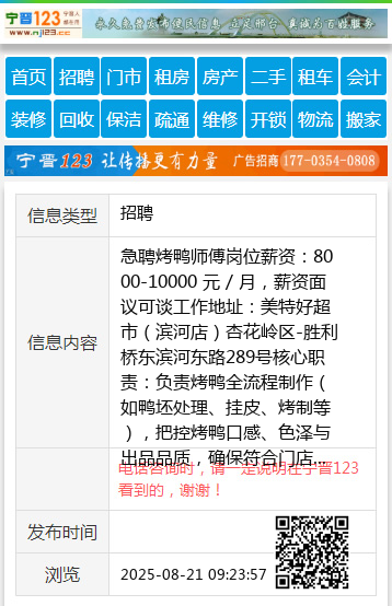 急聘烤鸭师傅