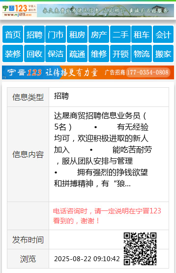 薪资待遇:薪资面议,采用底薪加提成模式,综合工资8000以上 【电话咨询时,请一定说明在太原生活网看到的,谢谢!】 |