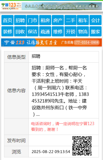 | 防骗提醒: | 太原生活网(www.sxtaiyuan.net)提醒您:手工活、网络兼职、刷单,都是骗子!凡以各种名义收取费用的都是骗子!找工作是往兜里挣钱,让你往外掏钱的都是骗子!异地招聘请提高警惕,谨防诈骗! |