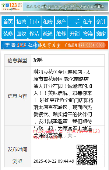 | 防骗提醒: | 太原生活网(www.sxtaiyuan.net)提醒您:手工活、网络兼职、刷单,都是骗子!凡以各种名义收取费用的都是骗子!找工作是往兜里挣钱,让你往外掏钱的都是骗子!异地招聘请提高警惕,谨防诈骗! |