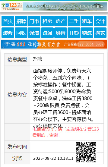 面馆厨房师傅,负责每天六个凉菜,五到六个卤味,(按标准操作)餐中捞面。