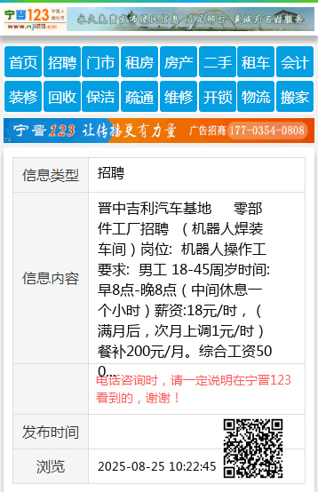 晋中吉利汽车基地 零部件工厂招聘 (机器人焊装车间)