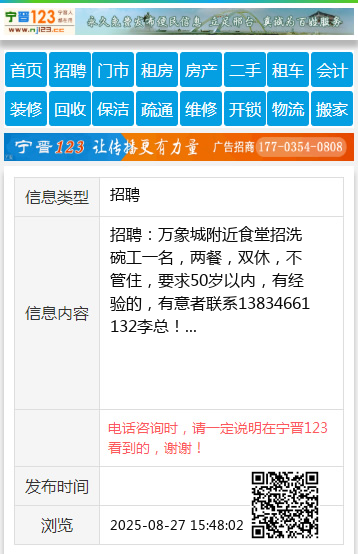 招聘:万象城附近食堂招洗碗工一名,两餐,双休,不管住,要求50岁以内,有经验的,有意者联系13834661132李总! 【电话咨询时,请一定说明在太原生活网看到的,谢谢!】 |