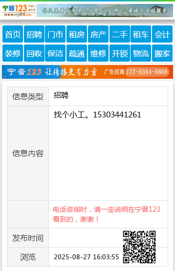 找个小工。15303441261