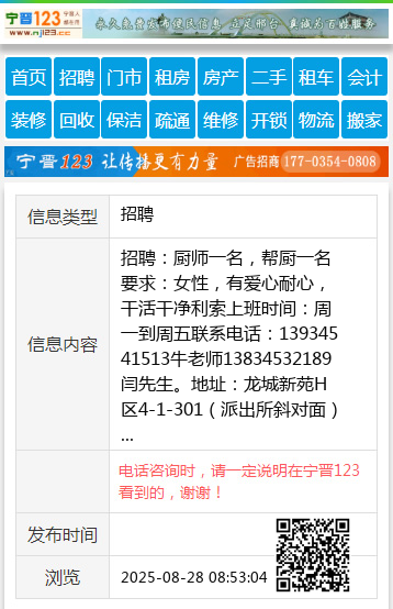 | 防骗提醒: | 太原生活网(www.sxtaiyuan.net)提醒您:手工活、网络兼职、刷单,都是骗子!凡以各种名义收取费用的都是骗子!找工作是往兜里挣钱,让你往外掏钱的都是骗子!异地招聘请提高警惕,谨防诈骗! |