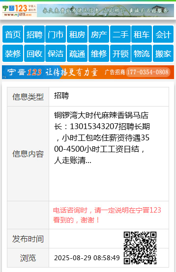 小时工工资日结,人走账清 【电话咨询时,请一定说明在太原生活网看到的,谢谢!】 |