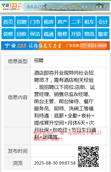 酒店即将开业现特向社会招聘贤才,需有酒店相关经验 ,现招聘以下岗位: