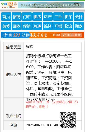 招聘小饭桌打杂阿姨一名