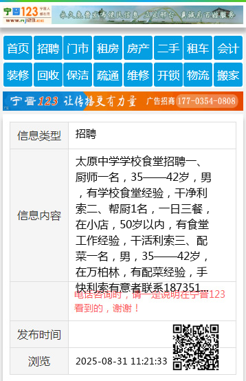三、配菜一名,男,35——42岁,在万柏林,有配菜经验,手快利索