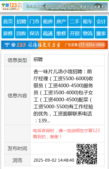 | 防骗提醒: | 太原生活网(www.sxtaiyuan.net)提醒您:手工活、网络兼职、刷单,都是骗子!凡以各种名义收取费用的都是骗子!找工作是往兜里挣钱,让你往外掏钱的都是骗子!异地招聘请提高警惕,谨防诈骗! |